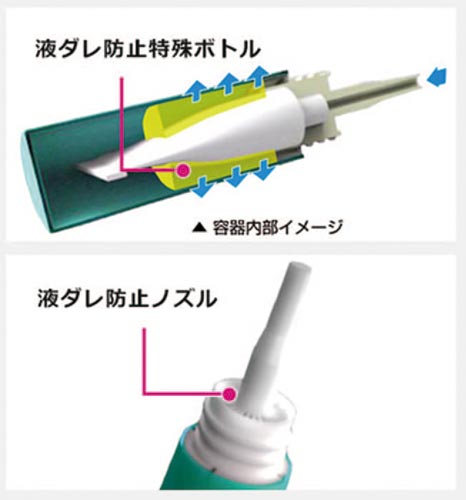 いろいろな材質に対応した多用途タイプの液体瞬間接着剤です。特殊容器を採用し、ノズルが固まりににくい構造のため、一度開封しても長持ちします。プッシュボタン式のため、液体調整も容易にできます。