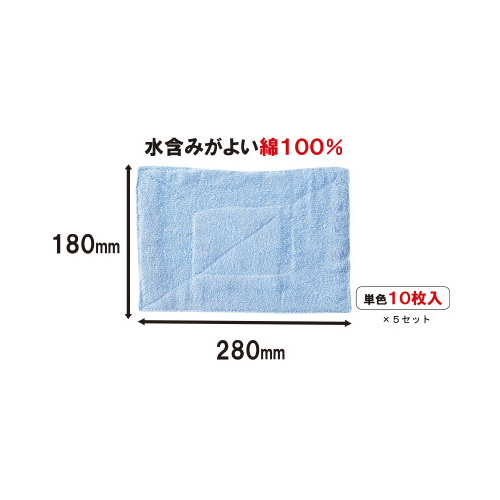 場所に応じて使い分けができるカラータイプのタオルぞうきん。中心部分を厚くしており(3重縫製)、強度の高い雑巾です。