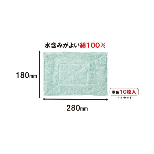 場所に応じて使い分けができるカラータイプのタオルぞうきん。中心部分を厚くしており(3重縫製)、強度の高い雑巾です。