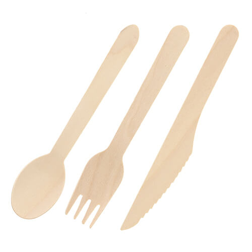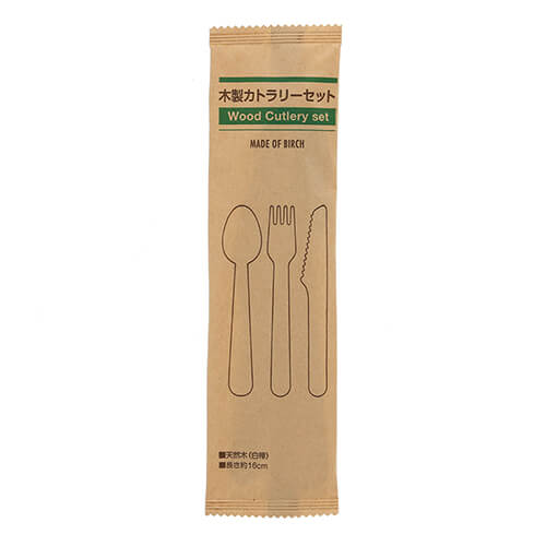 アサヒグリーン 木製160mm スプーン・フォーク・ナイフ 3点セット 未晒紙完封 50セット