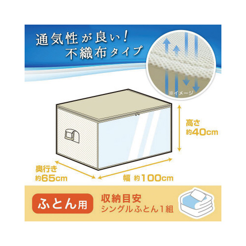 ダニよけ・防虫・抗菌抗カビのトリプルパワーで収納物を守ります。通気性のある不織布制です。持ち手付きで持ち運びに便利です。透明窓付きで中身が分かりやすいです。