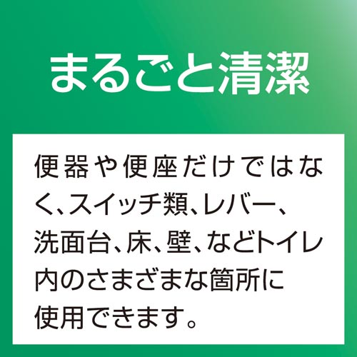 トイレ内のウイルスも汚れもこれ1本で便器や便座だけでなく、スイッチ類、レバー、洗面台、床、壁などトイレ内のさまざまな箇所に使用できます。除菌・消臭も出来て二度ぶきいらずです。