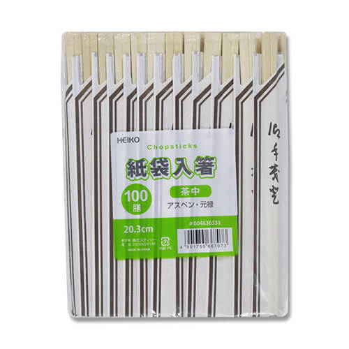 木肌が白く清潔感のあるアスペン材の小袋入りの割箸です。定番の小袋デザインですのであらゆるお店で広くお使いいただけます。サイズは4.2×203mmです。
