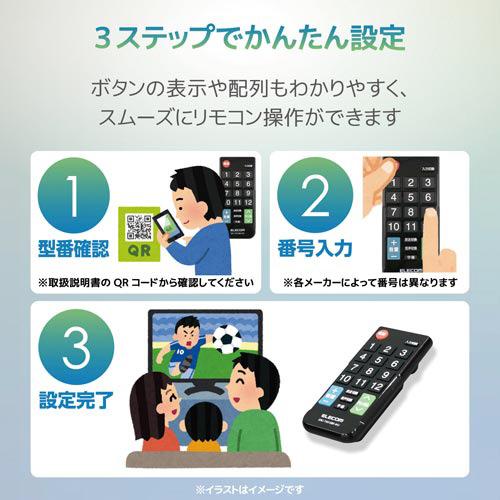 録画やメニューなどのボタン排除で、小さなお子様による誤操作を防ぐ!12メーカーのテレビに対応し、握りやすさを追求したSサイズのマルチテレビリモコン。