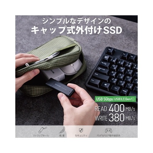 キャップでUSBコネクターへのゴミやホコリなどをブロックできる、シンプルなデザインのUSB5Gbps(USB3.2(Gen1))外付けポータブルSSDです。