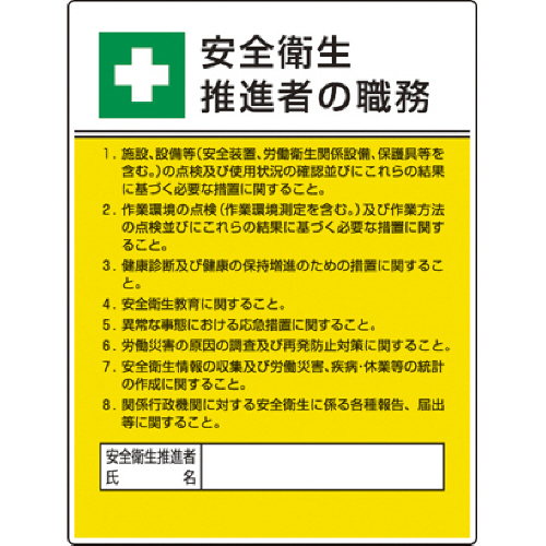 作業主任者職務板 安全衛生推進者・エコユニボード・600×450 1枚