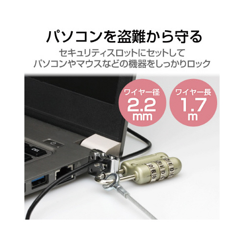 ノートパソコンのセキュリティスロットにセットするだけで、ノートパソコンやマウス、テンキー等を同時に盗難から守ります。
