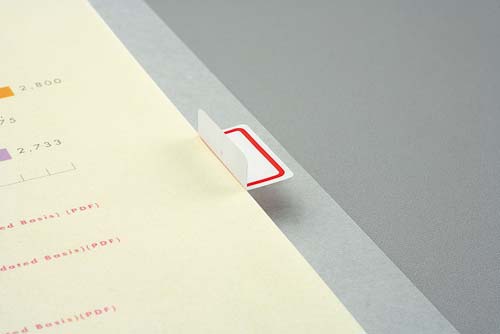 折り目に沿って位置合わせができるから、簡単・キレイに貼れる。マルチプリンタ対応の強粘着タイプのタックインデックスです。