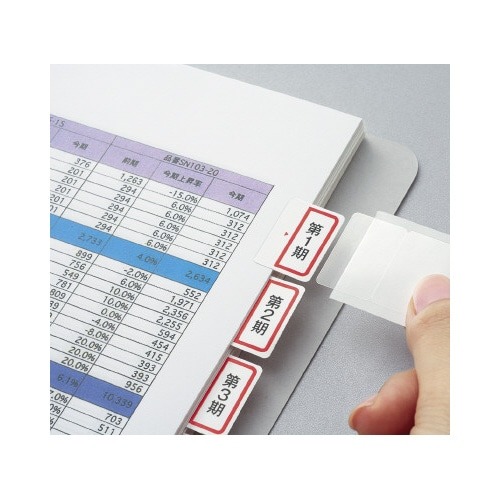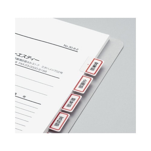 折り目に沿って位置合わせができるから、簡単・キレイに貼れる。マルチプリンタ対応の強粘着タイプのタックインデックスです。