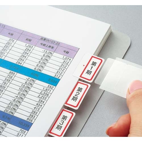 折り目に沿って位置合わせができるから、簡単・キレイに貼れる。マルチプリンタ対応の強粘着タイプのタックインデックスです。