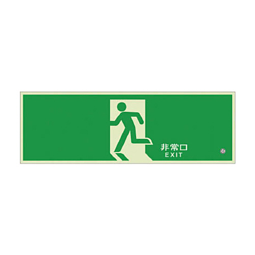 照明が消えた後も発光し暗所での避難誘導が容易に行える事を目的とした高輝度蓄光式標識です。