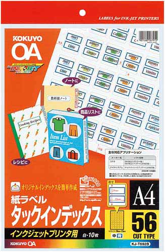 インクジェットプリンタできれいに作成できるインデックスラベル。
