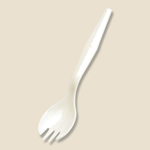 1本でスプーンとフォークの二役を兼ねており、テイクアウトやイベントなどで便利に使用できるフォークスプーンです。