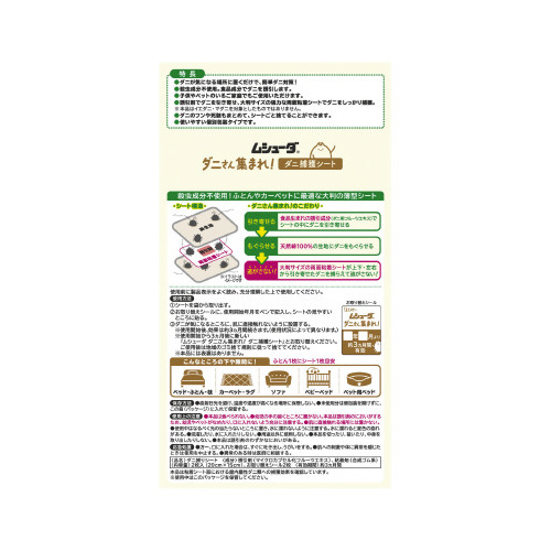 殺虫成分不使用の大判捕獲シート。ダニが気になる場所に置くだけで、簡単ダニ対策!