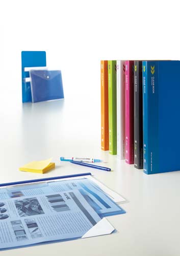 コクヨK2シリーズ。整理分類しやすい6色展開の背紙付きクリヤーブック。