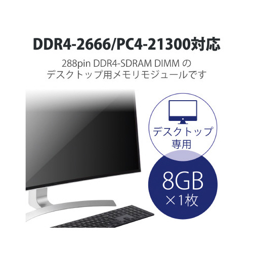 DDR4-2666/PC4-21300に対応した288pinDDR4-SDRAMDIMMのデスクトップ用メモリモジュール。「RoHS指令」に準拠。