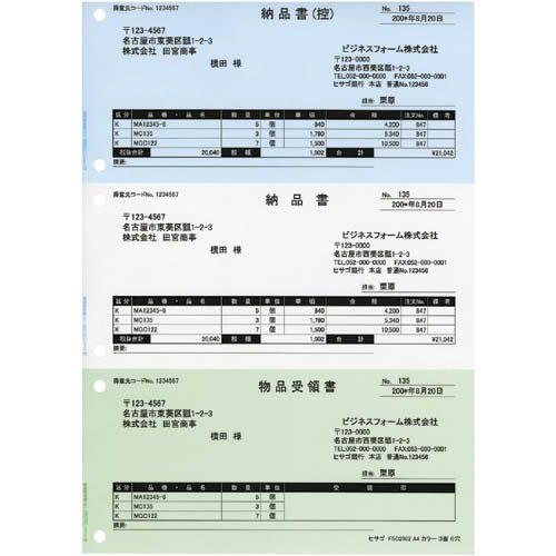 マルチプリンタ帳票 A4 カラー3面6穴 100枚