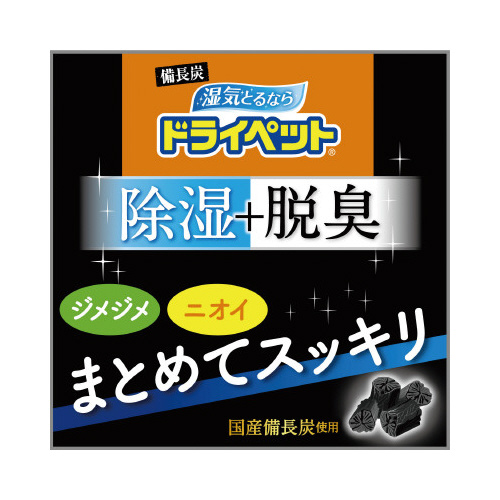 除湿剤に備長炭と活性炭を特殊配合しているので、湿気を取りながら気になるニオイを脱臭します。湿気を吸うと薬剤がゼリー状になり、除湿効果がひとめでわかります。衣類の収納時に湿気とニオイを吸いとります。