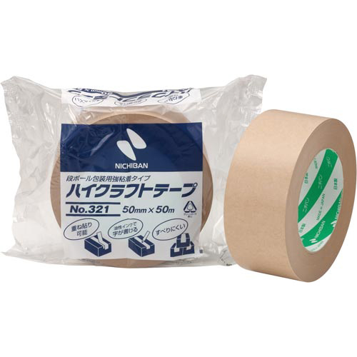 信頼のニチバンブランドのクラフトテープ。油性インクで字が書ける、重ね貼りできる、すべりにくい、ニュータイプのクラフトテープです。粘着剤塗工時に、有機溶剤を使用していません。