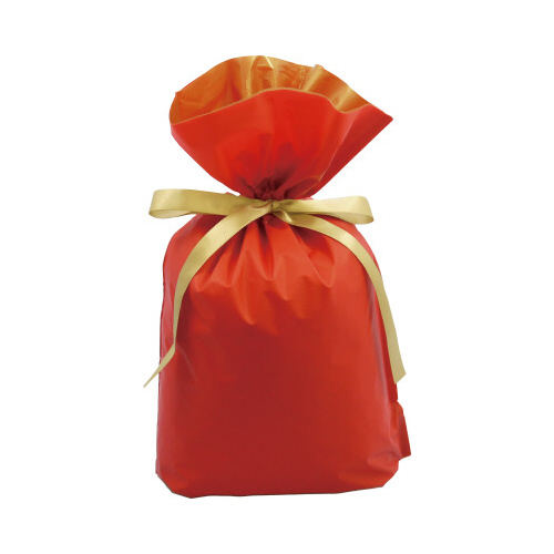 梨地ポリ巾着袋(底マチ付) レッド M 20枚