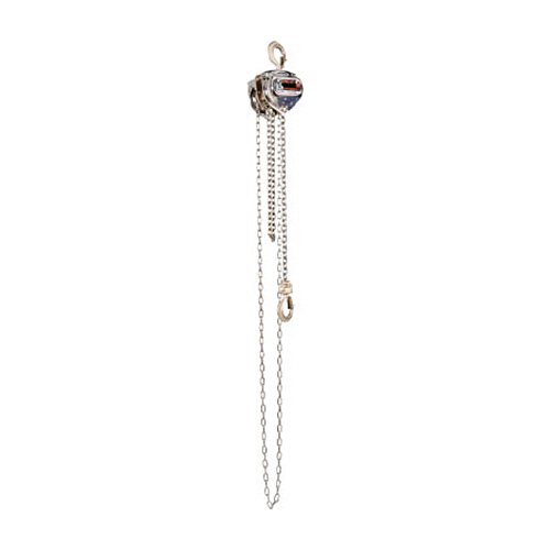 ロードチェーン、ハンドチェーンがステンレス製で、クリーンルームや食品工場などでの使用にも適しています。
