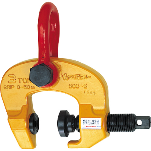 ●ねじ式で球面板、曲板などあらゆる物の水平吊り、垂直吊り、反転作業ができる万能型吊りクランプです。