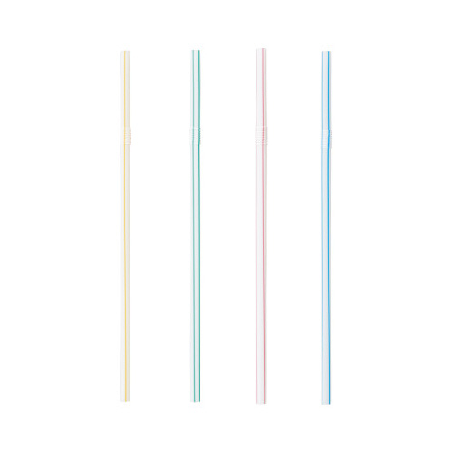 飲みやすい曲がるタイプのストロー。ストライプ柄が4色入っているので色分けにも便利。