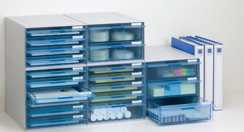 タテ・ヨコ組み合わせて共有スペースにも最適!垂直方向へのスタッキングはもちろん、付属パーツを使用すれば横連結も可能。仕切板を使えば細かく分類できます。