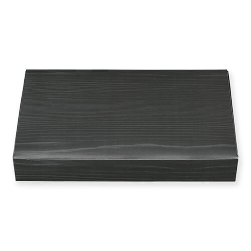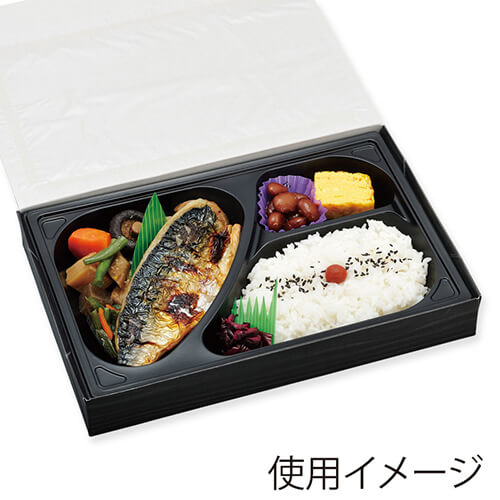 高級弁当に最適なシンプルな黒木目柄。重厚感を演出します。別売の中仕切りと一緒にご使用ください。外装の蓋と本体が一体になっているタイプです。※電子レンジ使用不可※オーブン使用不可