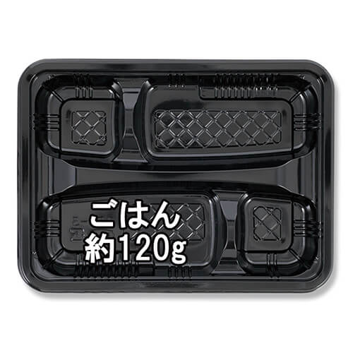 容器内の仕切りは、太くて高さがあり、機能的で美しく見せる弁当容器です。外嵌合蓋「CR-1」は別売です。※電子レンジ可※オーブン使用不可※耐油性:あり※耐熱温度:110度※仕切りの数:4※ご飯容量:約120g