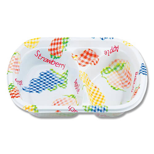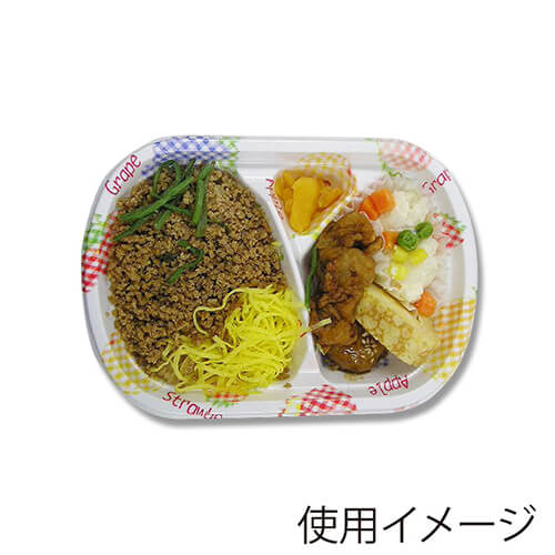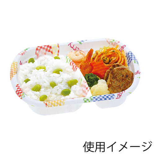 ギンガムチェックのフルーツ柄がかわいらしい印象の弁当容器です。※電子レンジ使用可※オーブン使用不可※耐油性:あり※耐熱温度:105度※ご飯の容量:約190g