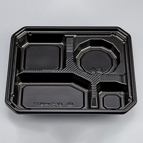 惣菜容器「BFカップ内4」と「平嵌合蓋」がぴったり納まるよう設計された弁当容器です。