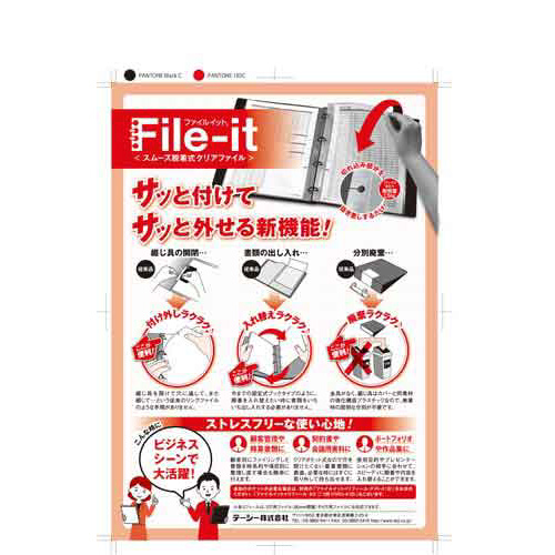 ファイルのリング開閉なしにリフィルが簡単に取り付け取り外しができます。リフィルは市販の2穴リングファイルにも使用する事ができます。又、クリアホルダーの様に単体で使用する事が可能です。