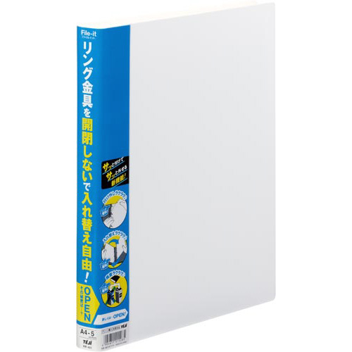ファイルのリング開閉なしにリフィルが簡単に取り付け取り外しができます。リフィルは市販の2穴リングファイルにも使用する事ができます。又、クリアホルダーの様に単体で使用する事が可能です。
