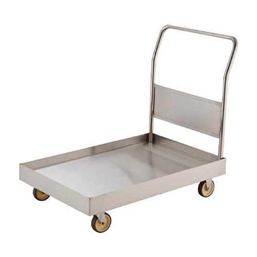 荷台部が深さ50mmのオイルパン形状のSUS304製台車です。