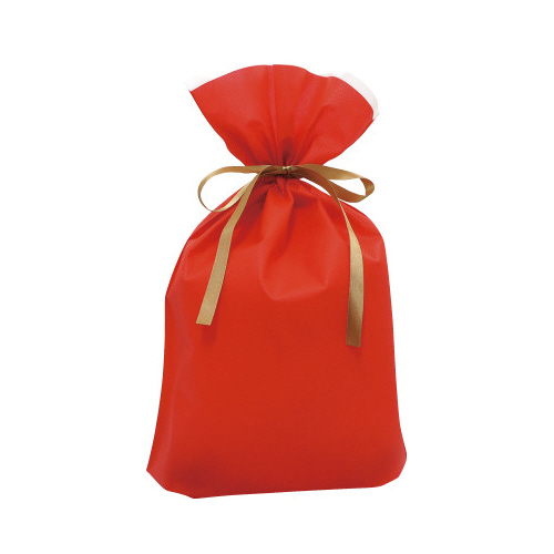 不織布巾着バッグ底マチ付レッド LL 10枚入