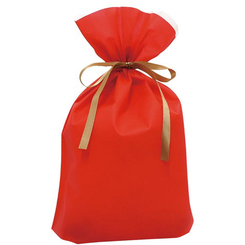 不織布巾着バッグ底マチ付レッド M 10枚入