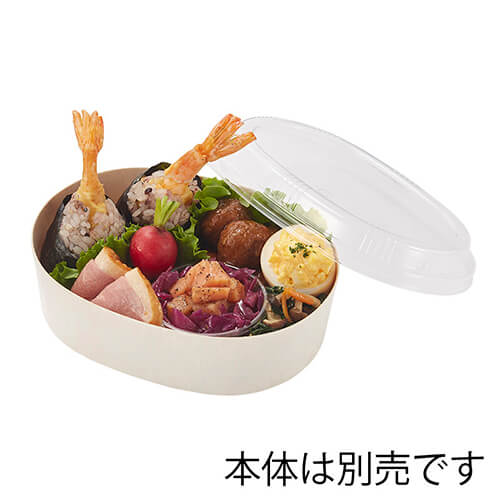 マメ科の広葉樹の一種、ファルカタという早生樹を使用した食品箱「ふぁるかたぼっくす楕円120×170」の専用透明フタ。サイズは125×175×高20mmです。
