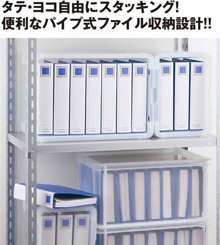 便利なA4ファイル収納設計。タテ・ヨコ自由にスタッキング!※フタは別売りです。