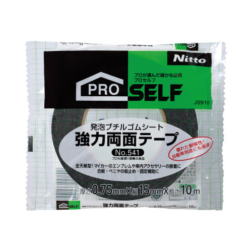 全天候型で屋外でも使用できるブチル基材の強力両面テープ。自動車の軽量な外装部品の固定補助にも十分に使えます。