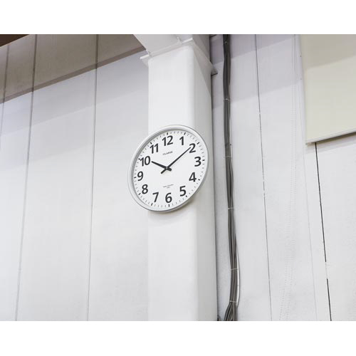 直径50cmの超大型電波時計!オフィス、教室、工場、公共施設などに最適。電池1本で約5年間動作可能の省エネ設計。防滴、防塵仕様で湿気やほこりが発生する場所での使用にも。