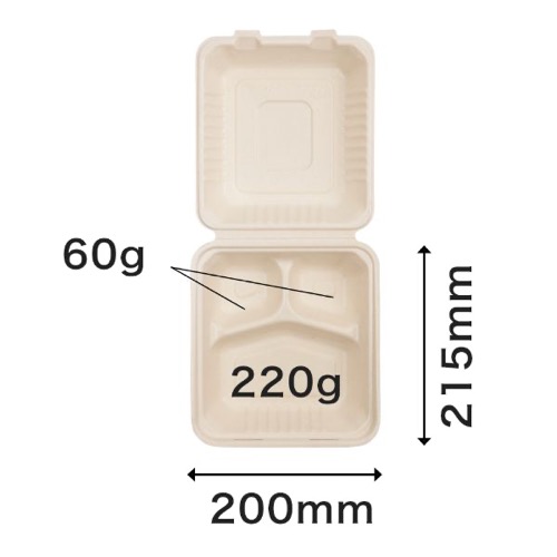 サイズや仕切りの違いで13種類展開。お惣菜など軽食からパスタなどしっかりめのランチまで幅広く活用できます。耐油耐水性、電子レンジにも対応しています。内面のPLAフィルム加工でお米の付着を防ぎます