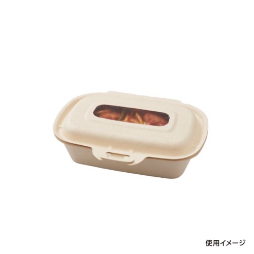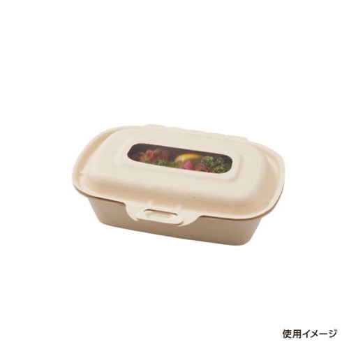 天面に窓を付けて中身が見えるので、テイクアウトだけでなく、店頭販売にぴったりです。容器についたツメによって、本体と蓋の隙間が出来にくくなりました。内面のPLAフィルム加工でお米の貼り付きを抑制、耐油耐水性、電子レンジ対応