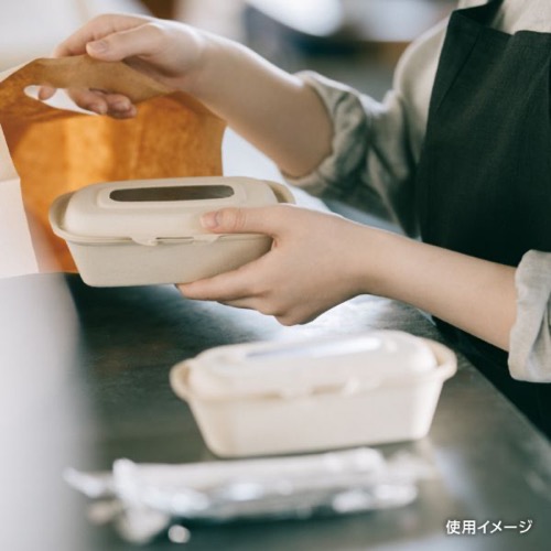 竹とバガス(サトウキビの搾りかす)の混合素材からできた、植物由来の業務用・使い捨てテイクアウトランチボックス