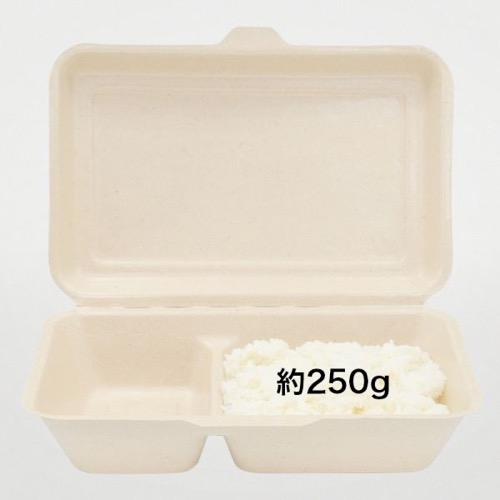 軽食にもちょうどいいサイズ感で、テイクアウトにぴったり。使用後は燃えるゴミとして処理できるのでアウトドアでも活躍。内面PLAラミネート加工でお米の貼り付きを抑制、耐油耐水性、電子レンジ対応
