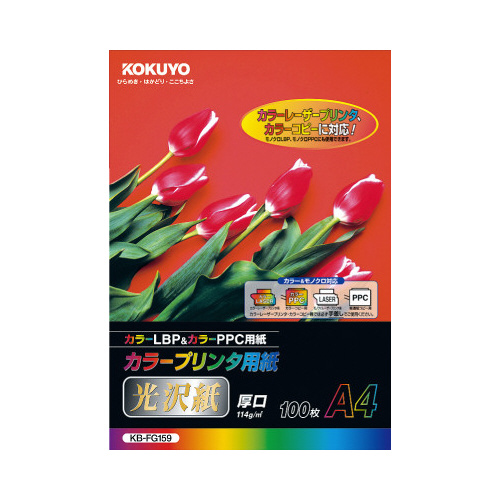 カラープリンター用のコピー用紙。表面に光沢感のある用紙です。表紙にも使えるしっかりした厚みがあり、フルカラー複写機、カラーLBPにも対応しています。