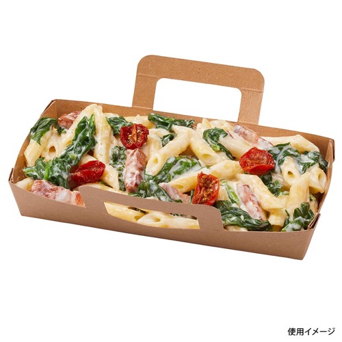 蓋の4ヶ所のツメで段積み性能も確保。内面PP貼りで耐水性、耐油性に優れています。電子レンジOK