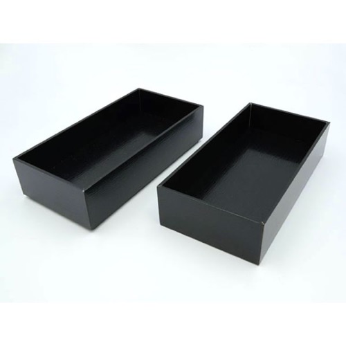 表面の漆塗り風の加工により高級感を演出。サイズ違い、色違いで全11種類の商品ラインナップ。※サイズ表記は外寸です