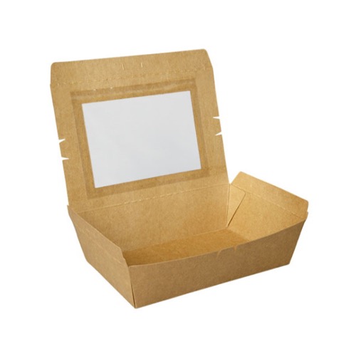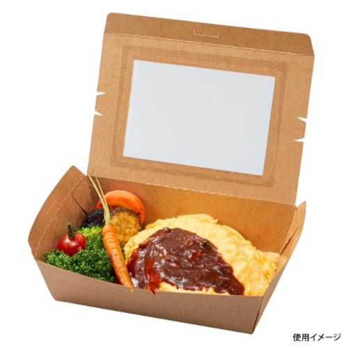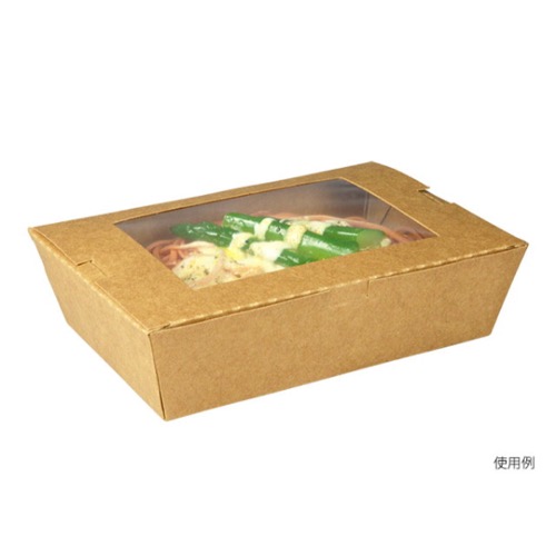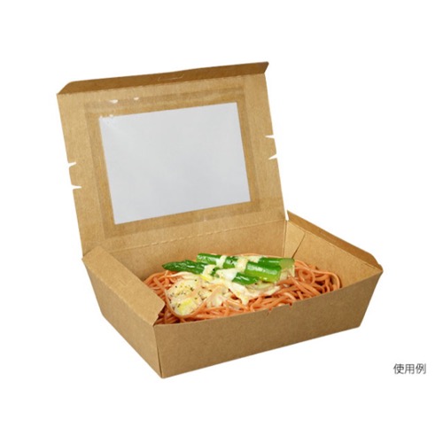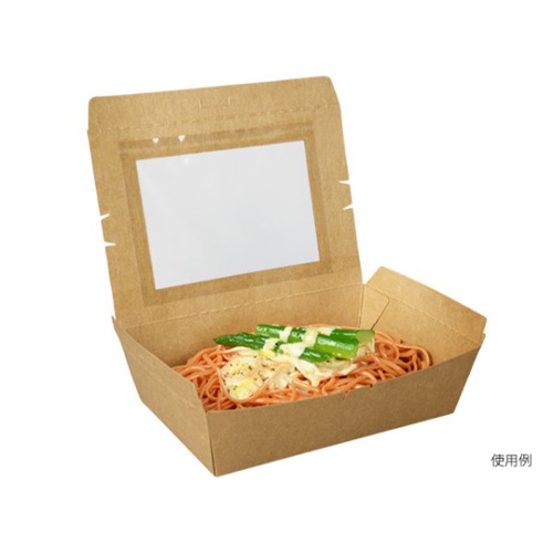 テイクアウトはもちろん、窓付で中身も見えるので、陳列販売にも対応できます。レンジ対応不可。窓フィルムは非防曇です。未晒しタイプ