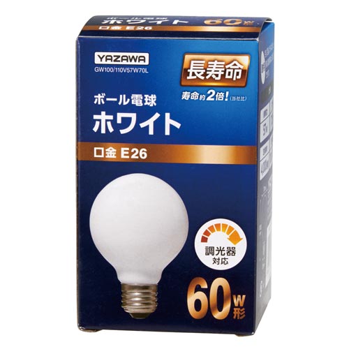 ボール電球60W相当ホワイト長寿命 φ70 E26